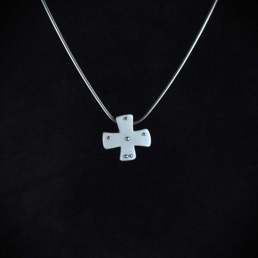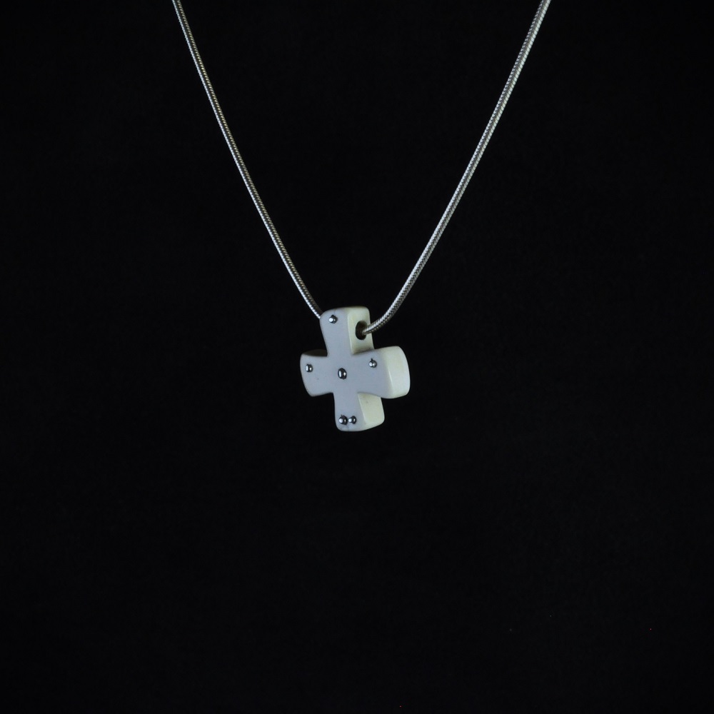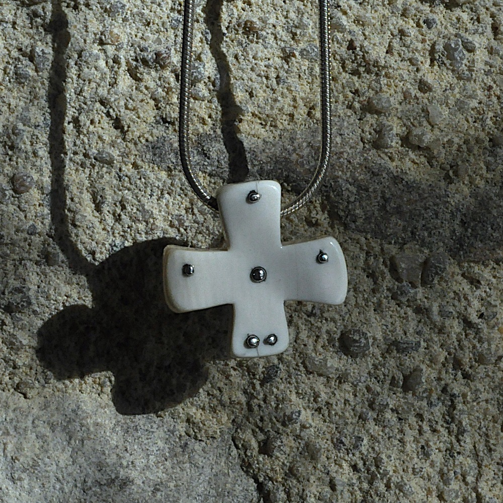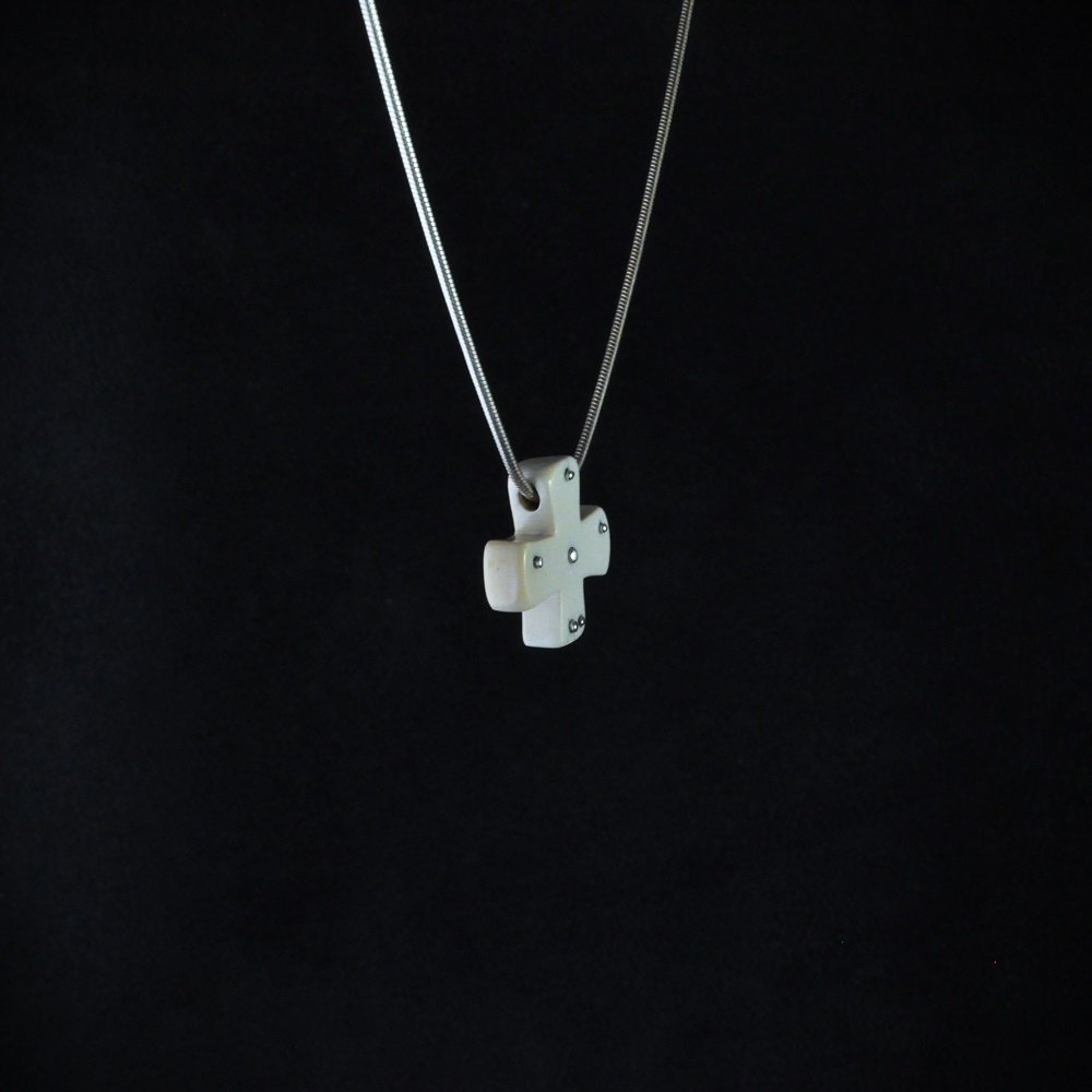 Pendentif en ivoire de mammouth du permafrost de Sibérie. Inserts d’argent.